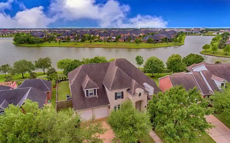 Situated on a lakefront lot, this stately David Powers home is sure to meet the needs of your family! Great curb appeal will welcome you home, as will the covered porch! Upon entering, notice the wood flooring that extends into Formal Dining & the Study, which also features French doors for privacy. The Family Room boasts 20′ ceilings, a wealth of built-ins & gas log fireplace. Generous Kitchen features an abundance of quartz counters & 42″ cabinetry, as well as island for extra prep space, breakfast bar seating & walk-in pantry. The Master Suite features a sitting area and leads to the Master Bathroom, with it’s double sinks, oversized shower, corner jetted tub & walk-in closets with closet system/built-ins. Upstairs Game Room has home work station so the kids can work, then play. Bedroom 2 is ensuite, while Bedrooms 3 & 4 have a Jack ‘n Jill bathroom. Extra storage room upstairs is great for seasonal decorations! Enjoy the view from your covered patio! New a/c units. No flooding!