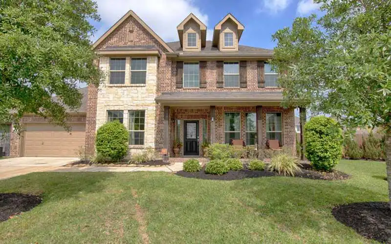 This gorgeous home, featuring brick & stone elevation and a fantastic covered porch, sits atop a huge, cul-de-sac lot. Upon entering, notice the gorgeous wood floors that extend throughout most of the first floor. Spacious Formal Dining is the setting for many a gathering of family & friends. The Family Room has soaring ceilings & a gorgeous floor-to-ceiling stone fireplace, and is open to the Kitchen and Breakfast area. the Kitchen boasts a large island with seating, gorgeous stainless appliances, and a huge walk-in pantry. Spacious Master Suite has coffered ceilings & a huge walk-in closet. Escape to the Master Bathroom, with its generous, oversized shower, jetted tub and his ‘n hers counters. Upstairs find a Game Room, complete with projector, screen and surround system, and three generous bedrooms with walk-in closets. The backyard is the place for Summer fun, featuring a huge covered patio, heated pool & spa & tanning ledge. Gorgeous inside and out! No flooding!