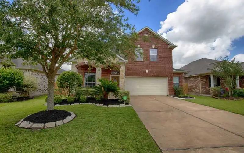 Fantastic brick & stone front elevation with covered porch will welcome you home each day! Study, with French doors for privacy, is perfect for someone who works from home! Kitchen features granite counters, tile backsplash with granite inlay, stainless steel appliances & recessed lighting! Family room has vaulted ceiling, laminate flooring & an abundance of natural light! Generous Master Suite leads to the Master bathroom, which boasts granite counters, upgraded cabinets, garden tub/separate shower, and a generous walk-in closet. Wrought iron banisters on the staircase lead you up to the second floor, which features a spacious Game Room – the setting for many a game or movie night. All Secondary Bedrooms are roomy and offer walk-in closets. Out Back finds an oversized patio, garden with veggies, herbs and fruit, as well as lush landscaping and a gate that leads to green space. Neat and clean and ready for new owners!