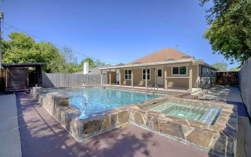 Wow! Spectacular home has been completely renovated! A gorgeous wood door will greet you each day! Once inside, notice the extensive, travertine flooring that adorns the home! The Kitchen is decked out to the 9’s with granite counters, stack stone backsplash, custom cabinetry with built-in pantry and a breakfast bar with stack stone accented “kick wall”. Generous Primary Bedroom has a nook to stash your wallet and keys so you can easily grab them on the way out the door, and a walk-in closet. The ensuite Primary Bathroom has a fantastic walk-in shower with travertine tile and decorative inlay, as well as granite counters. Both Secondary Bedrooms are roomy for the kids. With all new windows and a 1 year old a/c, energy efficiency is never an issue here! The backyard boasts a huge covered patio that overlooks the heated 18,500 gallon, 6.5′ deep pool & spa, louvered storage shed for your pool equipment, privacy fence & enough green space for your pets. This is a must buy! No flooding!