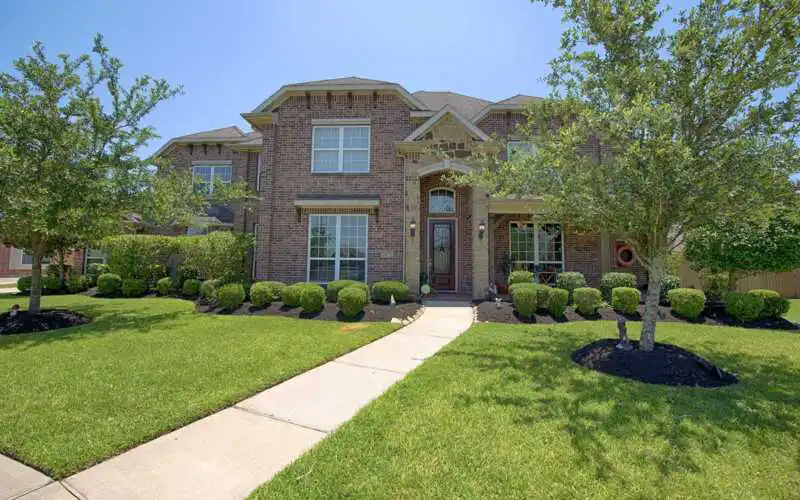 Situated on a fantastic cul-de-sac lot, this Harwood Home is sure to please! Beautiful curb appeal and a covered porch, will greet you each day. Once inside, notice the 18′ ceilings and extensive hardwood flooring. This floorpan is an entertainer’s delight, with Formals that are adjacent to one another – imagine the good conversations with great friends! The Study could be a 6th bedroom as it has a closet and full bathroom adjacent to it. The Family Room has an abundance of natural light & terrific built-ins for all your decorations or books. The Kitchen is sure to please the chef in the home, with a wealth of cabinetry & granite counter space, stainless appliances, including a gas cooktop on the island! The Generous Primary Bedroom is a great place to unwind. The ensuite has gorgeous counters, roomy shower, a jetted tub & walk-in closet. Upstairs finds a Game Room with balcony, 4 spacious bedrooms & 2 full bathrooms. This backyard is pool-ready and includes the playset! No flooding.