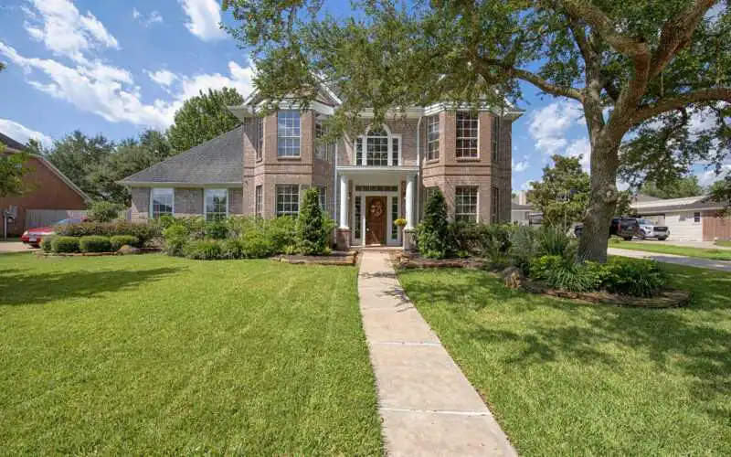 This beautiful home is sure to check all the wants & needs you have! Gorgeous curb appeal awaits you! Once inside, notice the 18′ ceilings & gorgeous tile flooring that extends throughout much of the 1st floor. The Study is to your left – it’s the perfect place for those who now work from home. To the right is the Formal Dining room, the focal point for many a gathering of family & friends. The Family Room is adorned with beautiful built-ins & a gas log fireplace to warm those chilly nights or set the mood on a date night in! The Kitchen is sure to please the chef in the home, with it’s gorgeous two-toned cabinetry, stainless appliances, stack stone backsplash, island with seating & a terrific work station area! The Primary Bedroom is private, and a great place to unwind after a long day. It’s ensuite bathroom boasts double sinks, jetted tub & separate shower, and a walk-in closet. Upstairs finds 3 generous bedrooms & 2 full bathrooms & a Game Room. Pool-sized backyard & no flooding!