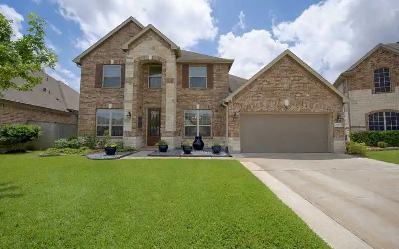 Absolutely stunning inside and out! This fantastic home is situated in a cul-de-sac and features a terrific stone & brick front elevation, as well as beautiful landscaping. Once inside, notice the wood-look tile that extends throughout the 1st floor. The Formal Dining will greet you as you walk in – it’s the focal point for many a gathering of family & friends. On the left you will find two spacious bedrooms, one of which could be an office if needed. The Kitchen is the heart of the home, boasting a large island with seating, an abundance of lighting, dazzling backsplash, granite counters, a huge walk-in pantry & a butler’s pantry with wine chiller & glass front cabinetry. The Primary Bedroom is private, and leads to the terrific ensuite with double sinks, corner tub, separate shower & walk-in closet. Upstairs finds a Game Room, Media Room (being used as an office), and 2 more generous bedrooms! Out back is a wonderful, oversized pergola patio & gorgeous landscaping. No flooding!