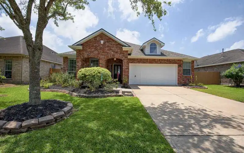 This gorgeous home is sure to please! Gorgeous landscaping and a covered porch will greet you each day. Once inside, notice the hard surface flooring (tile and laminate) that extends throughout the home. To the left is the Formal Dining, where you can sit down with the family over dinner while discussing the day’s events. The Kitchen is where many a tasty meal is prepared with love! It boasts dazzling granite counters, glass tile backsplash, stainless appliances & an abundance of counter space. The Kitchen is also open to the Family Room, offering great entertaining space for guests. The private Primary Bedrooms is spacious and features an ensuite with double sinks, soaking tub & separate shower, and terrific walk-in closet. Both Secondary bedrooms offer ample space for the kids or guests. A generous back yard can be enjoyed from the covered patio, or patio extension that also has a fire pit. This home also has a new roof, interior/exterior paint & plantation shutters! No flooding.