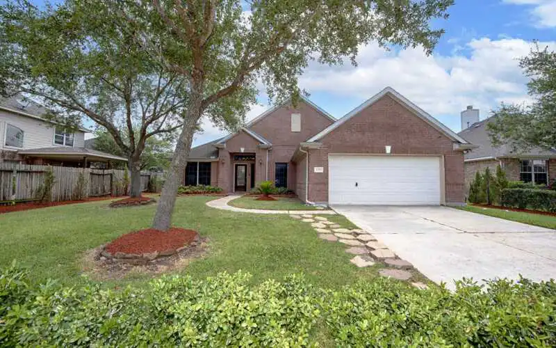 This home features gorgeous landscaping & paver walkway that will beckon you. Once inside, notice the hard surface flooring that extends throughout the home, including marble & engineered wood. The Formal Dining Room, being used as an office, is the focal point for many a gathering. The Family Room is the heart of the home! It has a terrific cast-stone fireplace that can warm a chilly night, or set the mood for a date night in! The Kitchen has been updated with gorgeous quartz counters, 42″ cabinetry with some glass front doors & trendy gold hardware. It also features stainless appliances, including 5 burner gas range, and a dazzling glass tile backsplash. The private Primary Bedroom is generous, and leads to the ensuite, boasting a great soaking tub, separate shower & double sinks. It also has 2 walk-in closets! All 3 secondary bedrooms offer ample space for the kiddos. Out back finds a covered patio, stamped concrete that looks like wood-look tile & no back neighbors! No flooding!