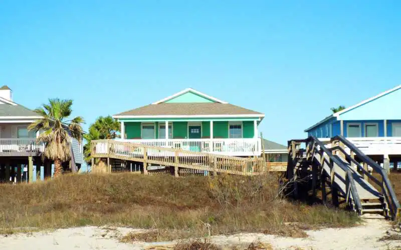 WOW! You will be AMAZED by the panoramic views on this beautiful beachfront home situated on a large lot featuring ramp access and right next to the beach walkover. This turnkey/fully furnished home in the heart of Surfside Beach has so much to offer and is a very successful vacation rental and is almost fully booked for summer. This one story, 3/2 home features large living area with open concept kitchen and oversized island, new stainless-steel appliances and incredible views of the beach. The front bedroom has windows with gulf views and is currently used as a bunk room with connecting bathroom. In the rear of the home there are 2 additional bedrooms with another full bath in between. The home has a new A/C, ample parking for friends, family and guests along w/garage below perfect for golf cart and storing all your beach toys. Schedule your showing as this incredible home wont last! (Please make note: home is an Active Vacation Rental and showing days/times are limited)