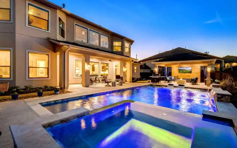 Experience luxury in this exquisite Mediterranean-style home in the gated, highly sought Oak Arbor Estates of Shadow Creek Ranch. This stunning and completely updated, custom-built Westport masterpiece features a grand entrance, high-end Benedettini cabinetry, and a whole-house generator. Its exquisite design includes a stucco exterior, wrought iron staircase, wood & tile flooring in the living areas, and a truly special two-tiered office. The Kitchen is a Chef’s dream, equipped with double ovens, a terrific 5-burner gas cooktop & a pot filler. This home offers a dreamy primary sanctuary, with a spa-like en suite bathroom and Closets By Design closet system and island. Upstairs finds 3 spacious Secondary Bedrooms, as well as a game room that provides endless entertaining possibilities. The resort style backyard has a fantastic covered patio, a heated pool, spa, and an outdoor cabana with a gas fire pit. Complete with a epoxied 3-car tandem garage, this home blends comfort with luxury.